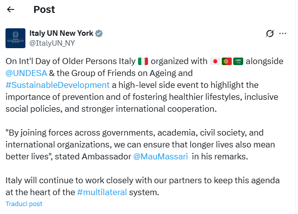 IL PRESIDENTE DELL’AILA – PROF. FRANCESCO BOVE – ALL’ONU PER AFFRONTARE LA TEMATICA DELL’INVECCHIAMENTO DELLA POPOLAZIONE
