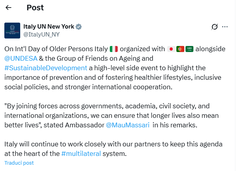 Giornata internazionale anziani, Fondazione Aila all'Onu: "Istituire un'agenzia per...