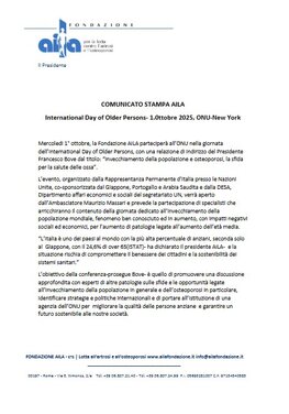 Il Prof. Francesco Bove - all'ONU per affrontare la tematica dell'invecchiamento della popolazione. Attività fisica e nutrizione per combattere l'osteoporosi.
